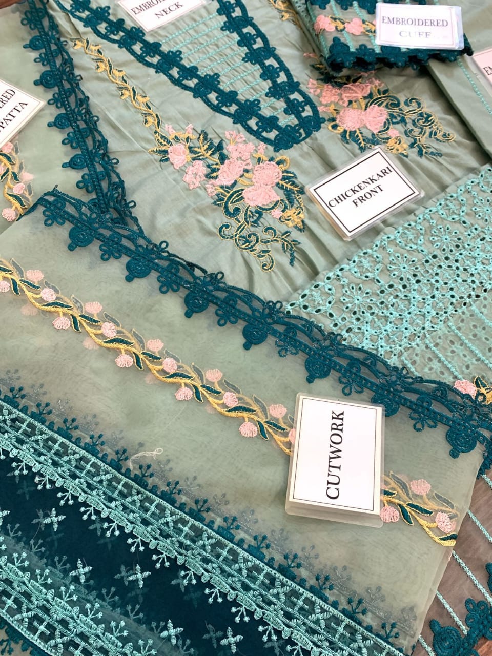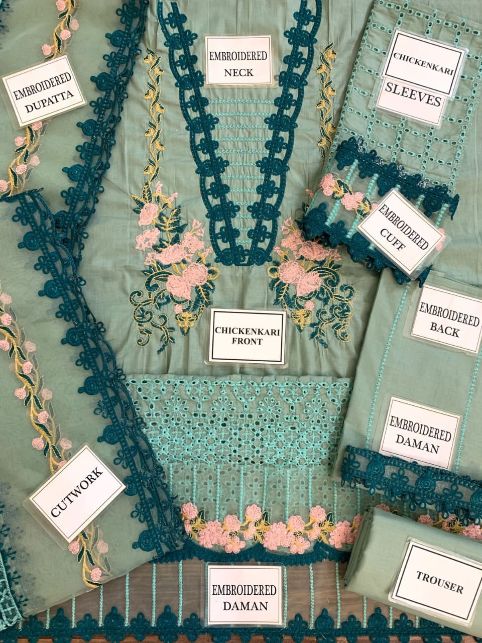Party Wear Collection with full embroiderd Shirt And Dupata with trauser stunning laces and tasls and paches are available..